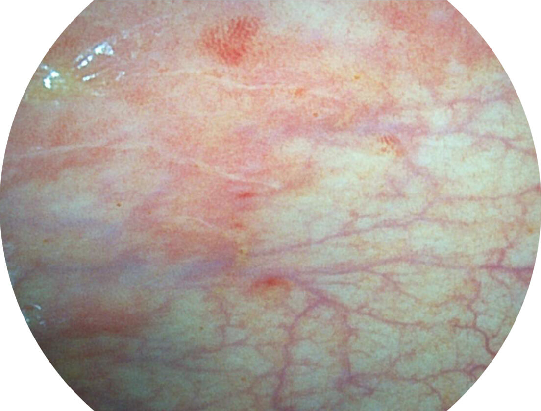 强调浅层黏膜结构的同时,保证照明亮度和提升浅层微血管与中层血管颜色对比度,病变边界更清晰。